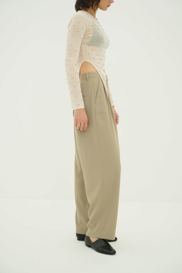 フロントに施したタックが生み出す、程よくゆとりのあるシルエットと、落ち感のあるラインが特徴で、スタイリングを選ばずバランス良く着用いただける一本です。