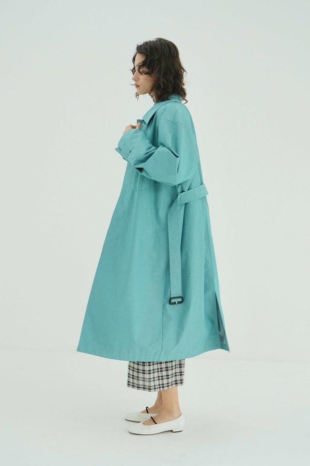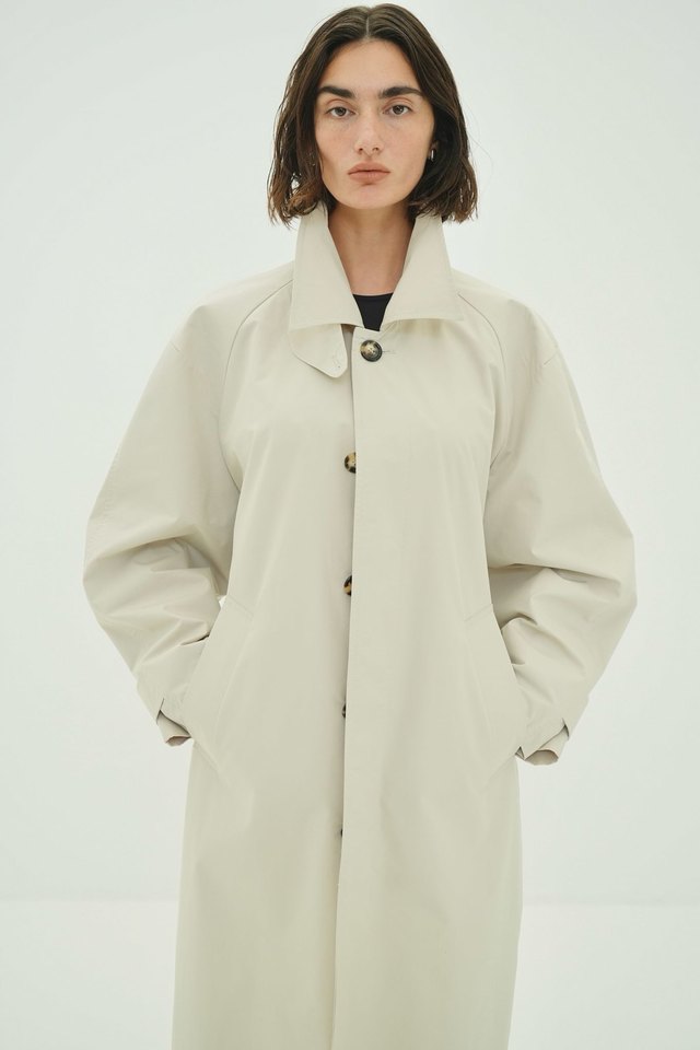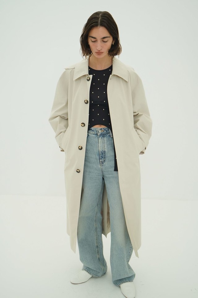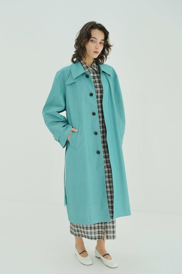 ミニマルで洗練された印象に仕上げた、ステンカラーコート。
