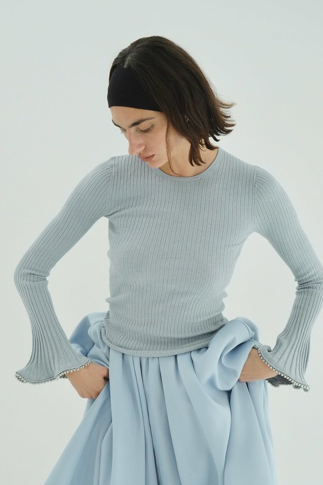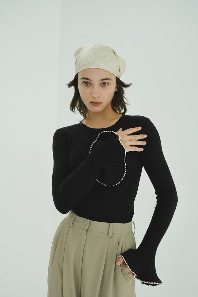 EMBELLISHED FRILL SLEEVE KNIT TOPS ¥26,000+tax