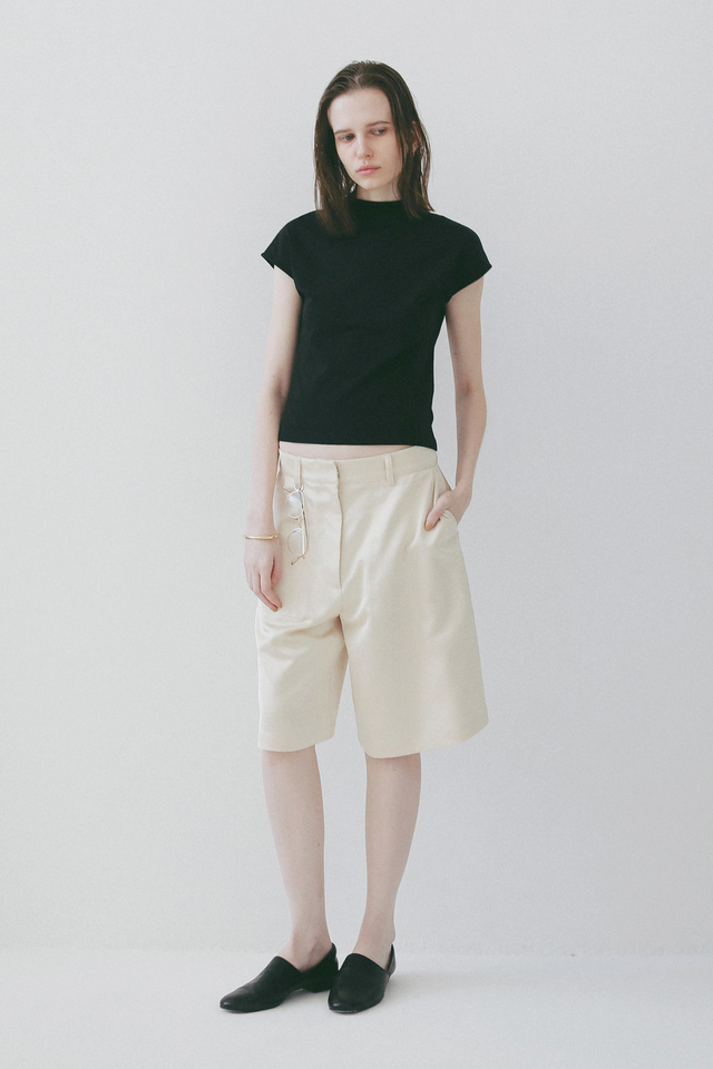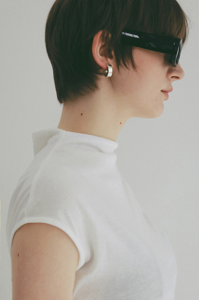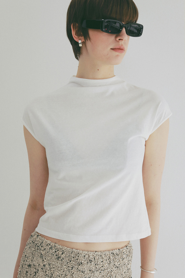 モードな印象を高める、立ち上がりのあるネックデザインが特徴のカットソー。落ち感のある天竺素材を使用し、軽やかで洗練された雰囲気に仕上げました。