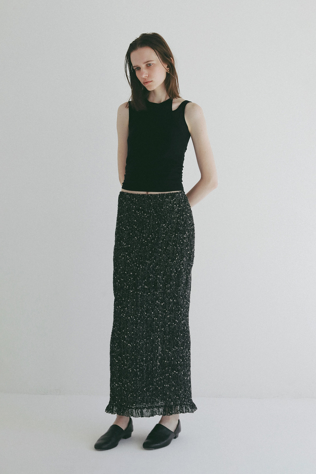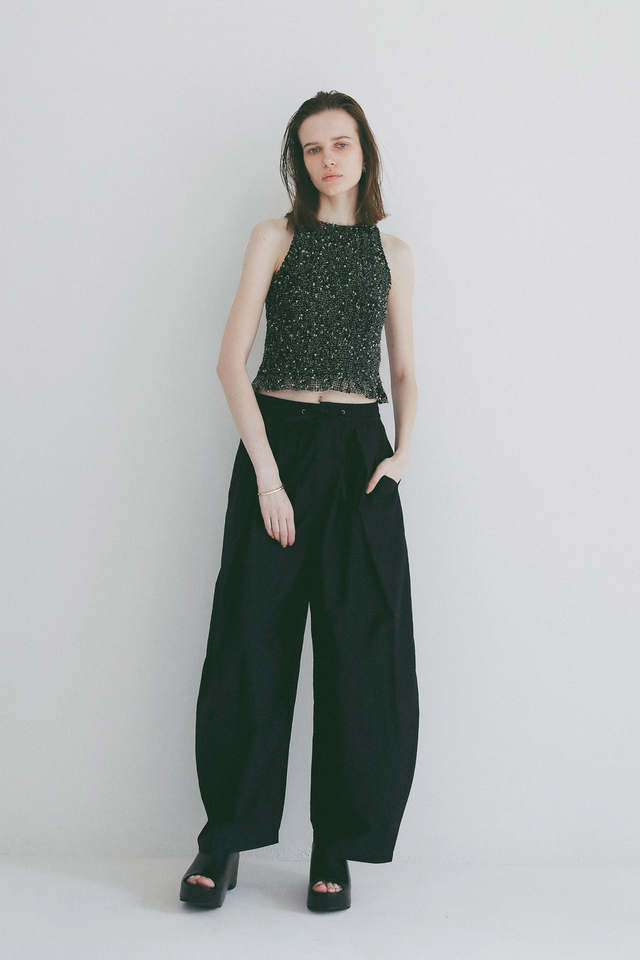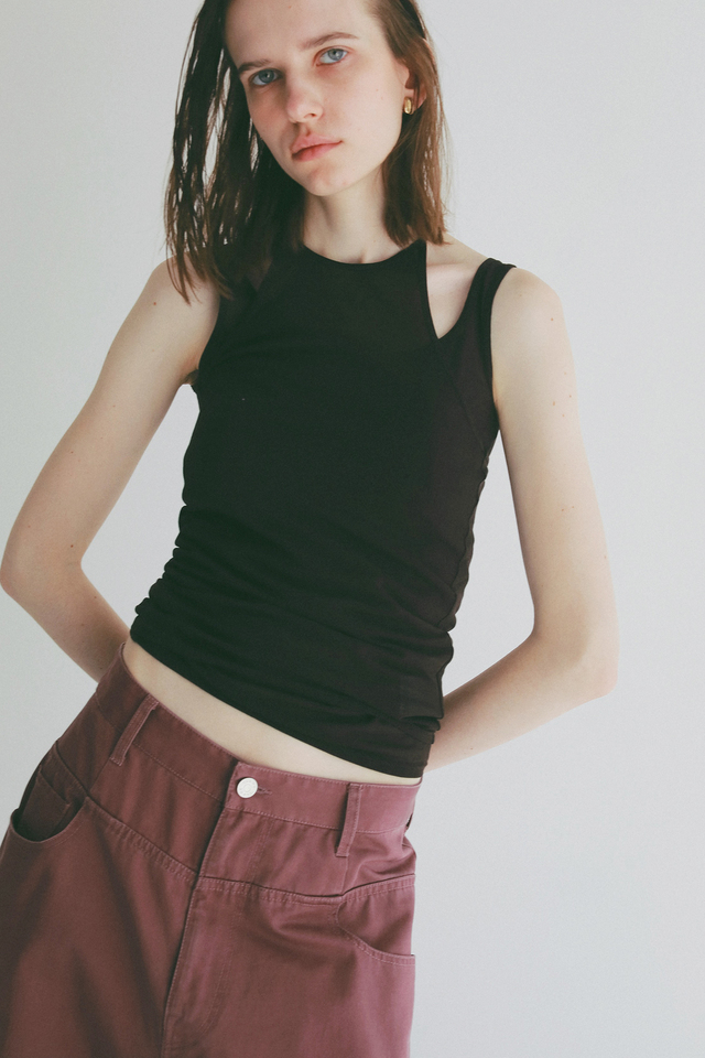 ホルターネックはやや直線的なラインでシャープに、タンクトップはスクエアネックとラウンドネックの仕様で、デコルテを美しく見せてくれます。