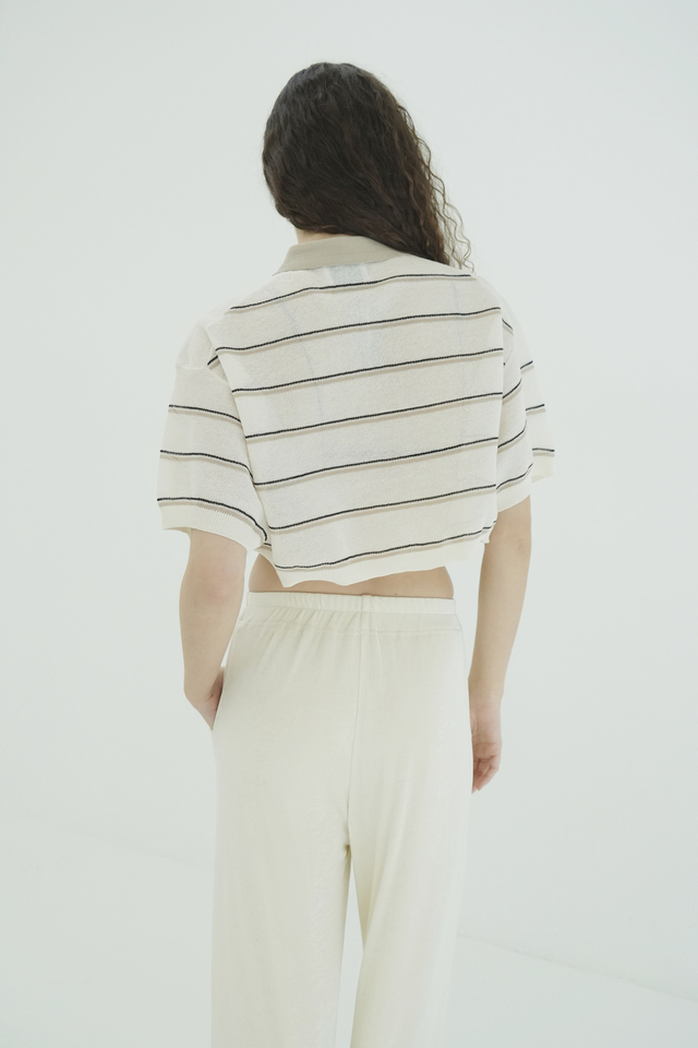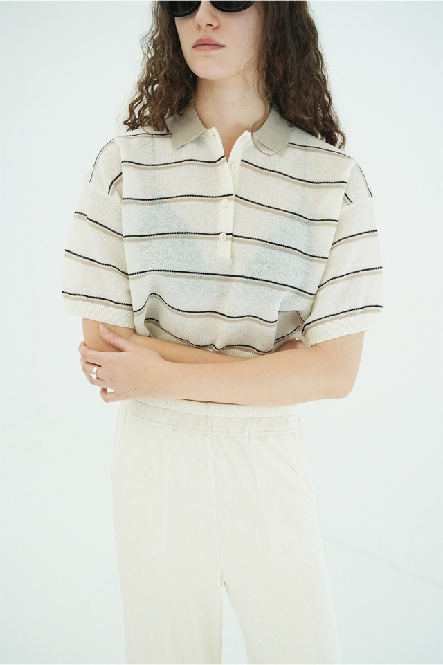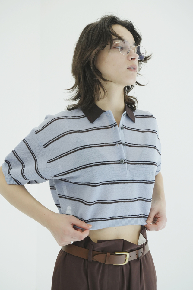 夏のスタイリングの主役になる、ボーダー柄のポロニットトップス。