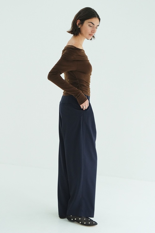 タック入りのゆったりとしたシルエットと、程よい落ち感が美しく、多くの方に支持されています。