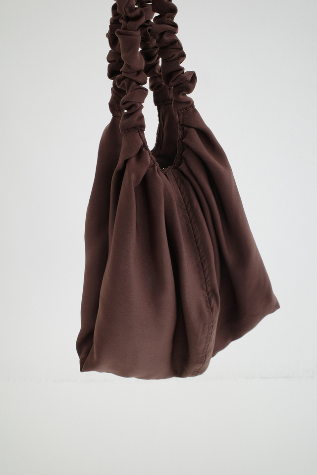 タックとギャザーを施した立体的なフォルムが、シルエットに印象的なボリュームを生み出します。