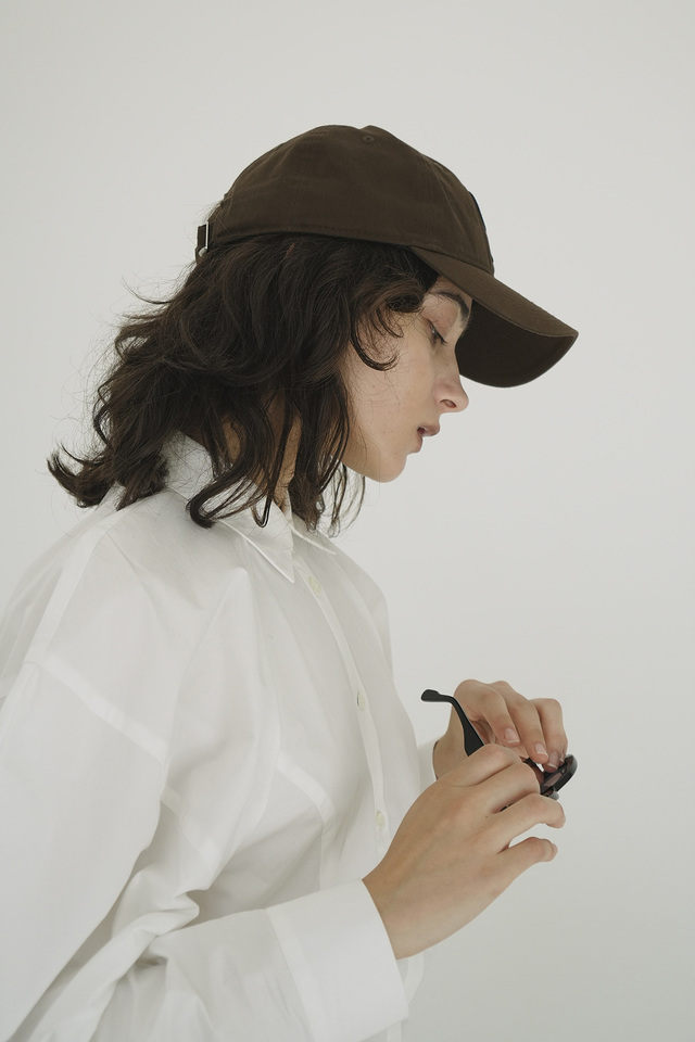 New Era®と初のコラボレーションキャップ、ショルダー部分とウエストのシェイプが印象的なボディスーツ型のニットトップス、無駄がなくすっきりとしたハイウエストデザインのワイドパンツ、美しいスクエアラインと高めのウエストパネルが施されたワンピース、袖の構築的なデザインが特徴的なシャツが登場。