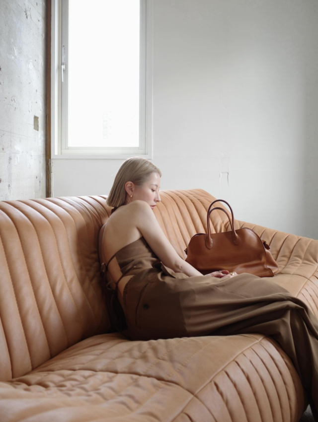 レイヤーウエストのデザインがさりげない奥行きを生み、丸みを帯びたレッグラインが身体のラインを拾いすぎず、美しいバランスで着ていただけます。構築的でありながらも、どこか力の抜けたシルエットが魅力です。