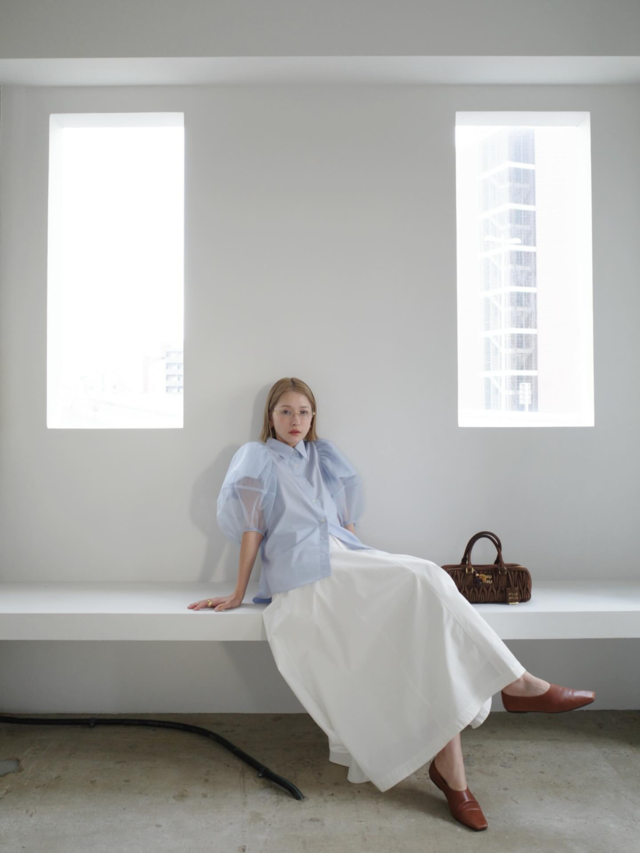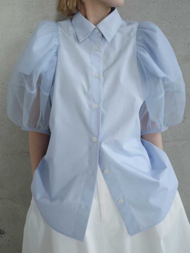 TOPS:TULLE LAYERED SLEEVE SHIRTS ¥20,000+tax/SAX/サイズ①(4月お届け予定)