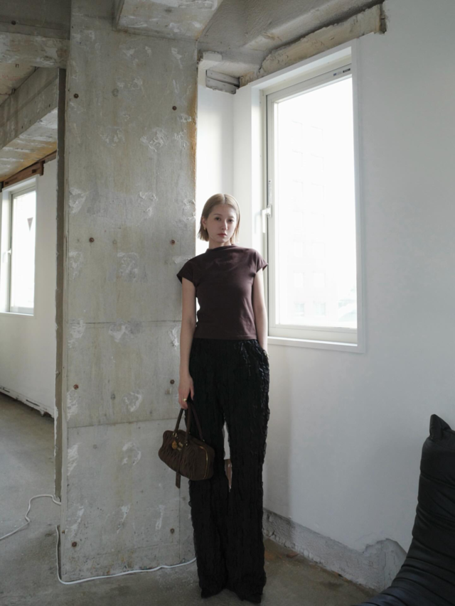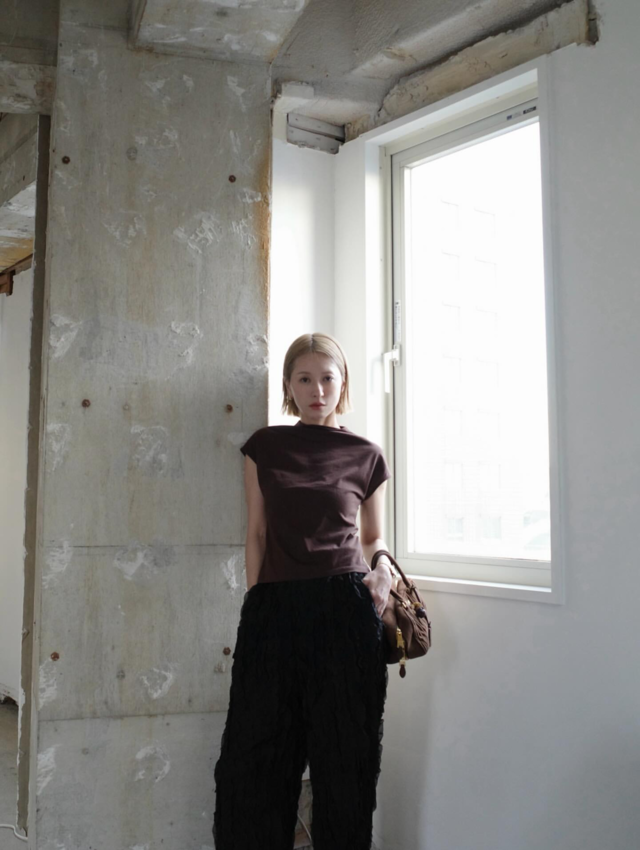 ジャケットのインナーとして覗かせたり、シアーアイテムとのレイヤードを楽しんだりと、スタイリングに奥行きをもたらす一枚。