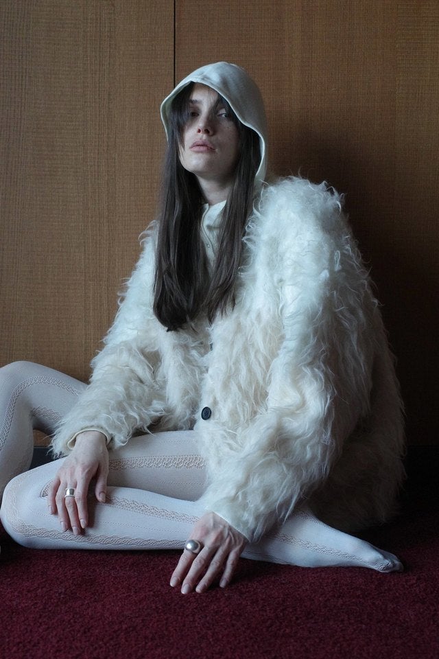 足をきれいに見せてくれるカッティングの、細長いアーモンド型になった履き口に仕上げました。シアー素材にポインテッドトゥのつま先がモードな印象です。