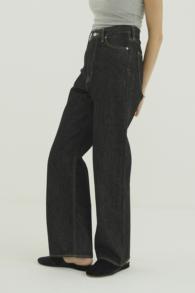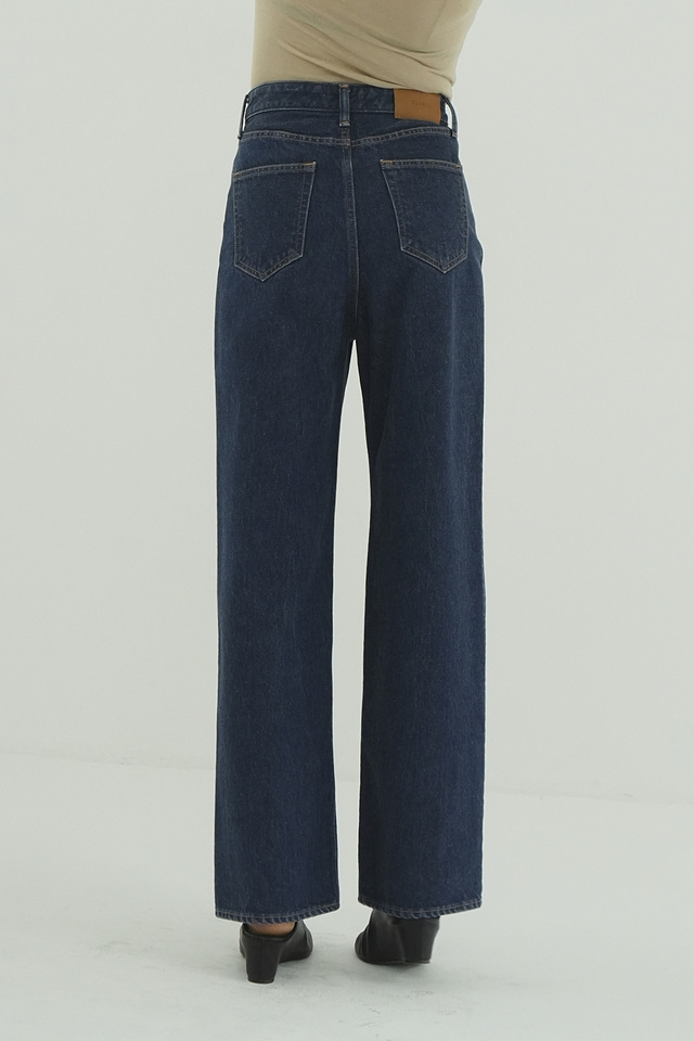 程よくワイドなストレートシルエットが魅力のデニムパンツ。ジャストウエストに設定することで、腰回りをすっきりと見せ、脚のラインをきれいに演出します。