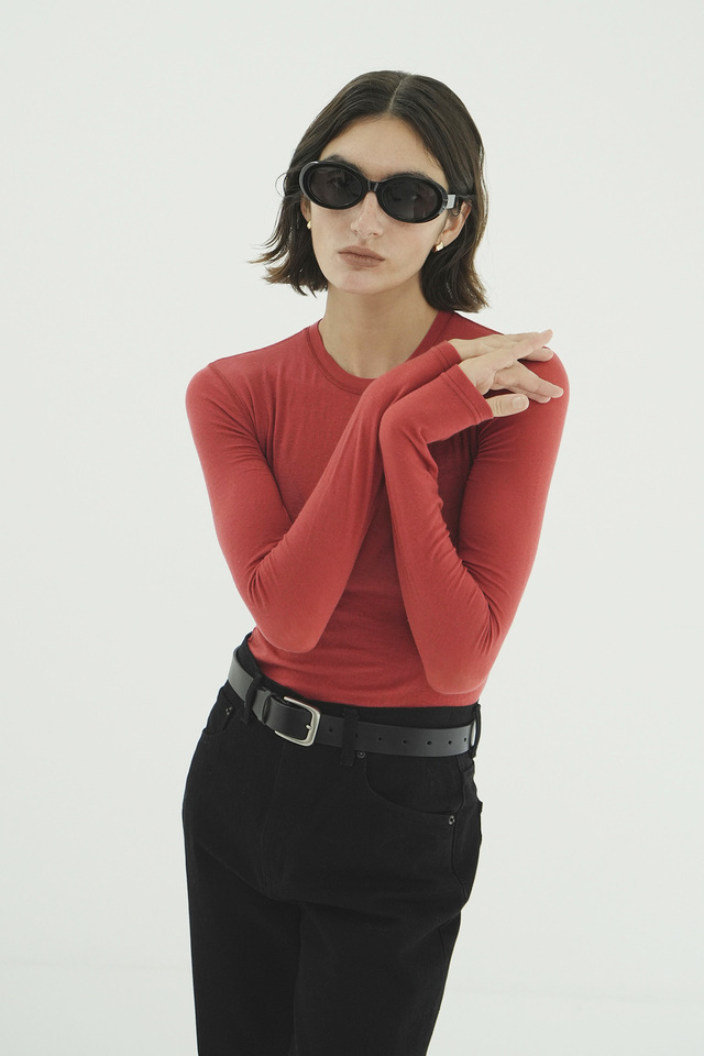 体を締め付けないストレッチ素材なので、ノンストレスで着用できるアイテムです。インナーとしてレイヤーできるので長く愛用いただけます。若干透け感がありますが、サラッと着やすい一枚です。
