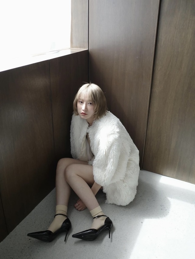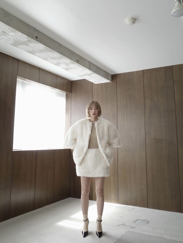 ミニマルなシルエットに落とし込むことで、クラシックなファーをモダンな印象に仕上げました。ボンディング加工を施し、程よいハリと立体感のあるフォルムを構築しています。