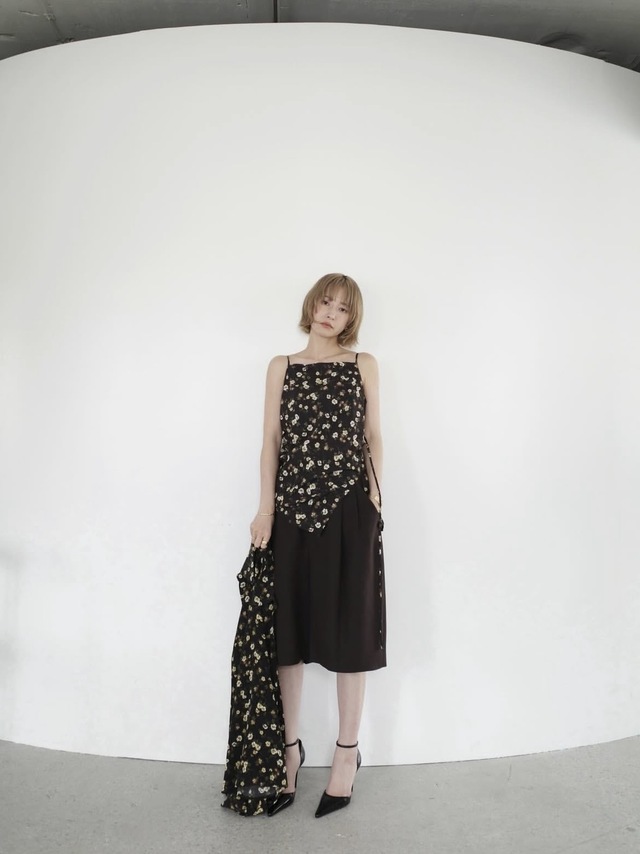 美しいドレープが印象的なCLANEオリジナル柄のキャミソールドレス。