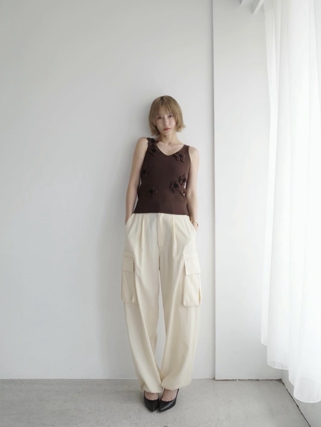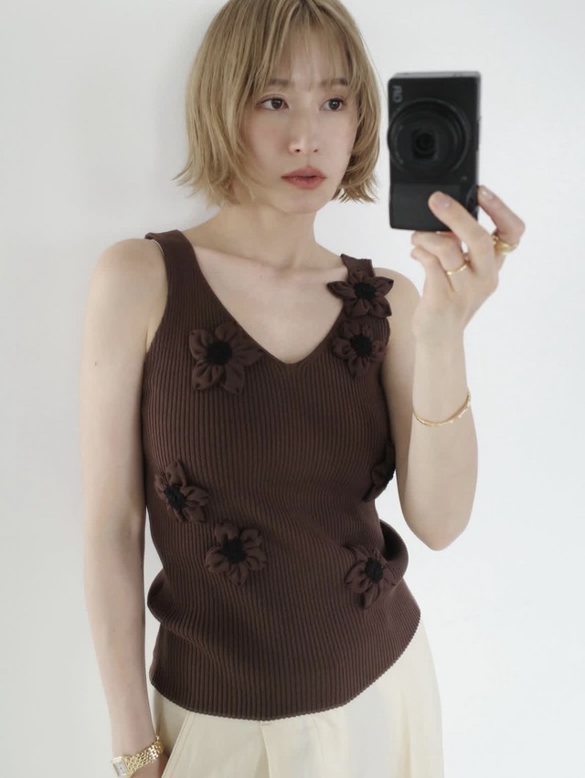 FLOWER MOTIF CAMI KNIT TOPS ¥28,000+tax /BROWN/サイズ①(7月お届け予定)