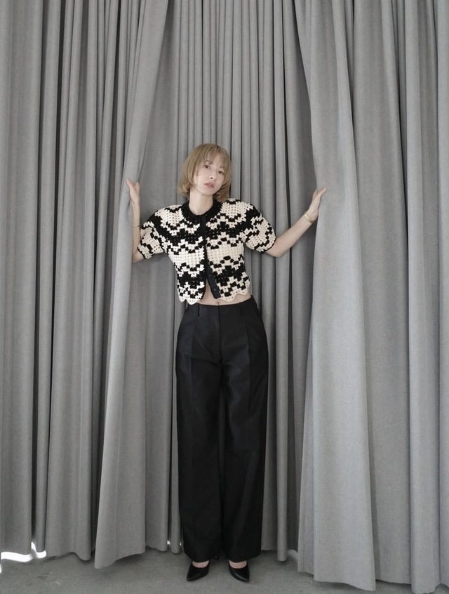 MALL BORDER HAND CROCHET KNIT CARDIGAN ¥26,000+tax /BLACK/サイズ①(8月お届け予定)