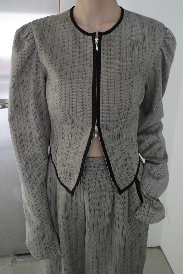 コンパクトな着丈でスタイルアップ効果もあり、同素材のパンツとのセットアップスタイルもおすすめです。