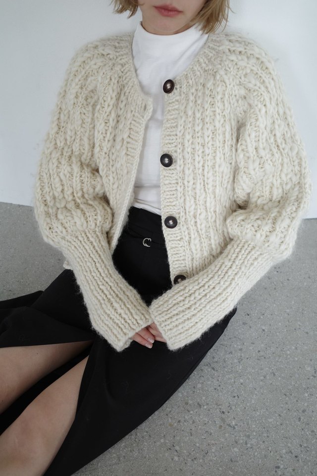 W FACE CHUNKY HAND KNIT CARDIGAN ¥33,000+tax /IVORY/サイズ①(9月お届け予定)