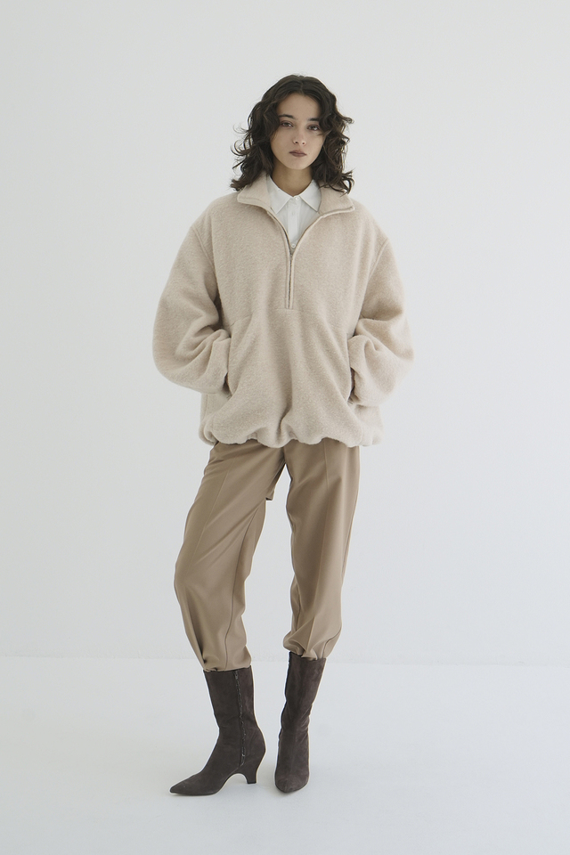 太めの裾リブがウエストラインを引き締め、スタイルアップ効果も。どんなボトムとも相性が良く、幅広いスタイリングに合わせやすい一枚です。
