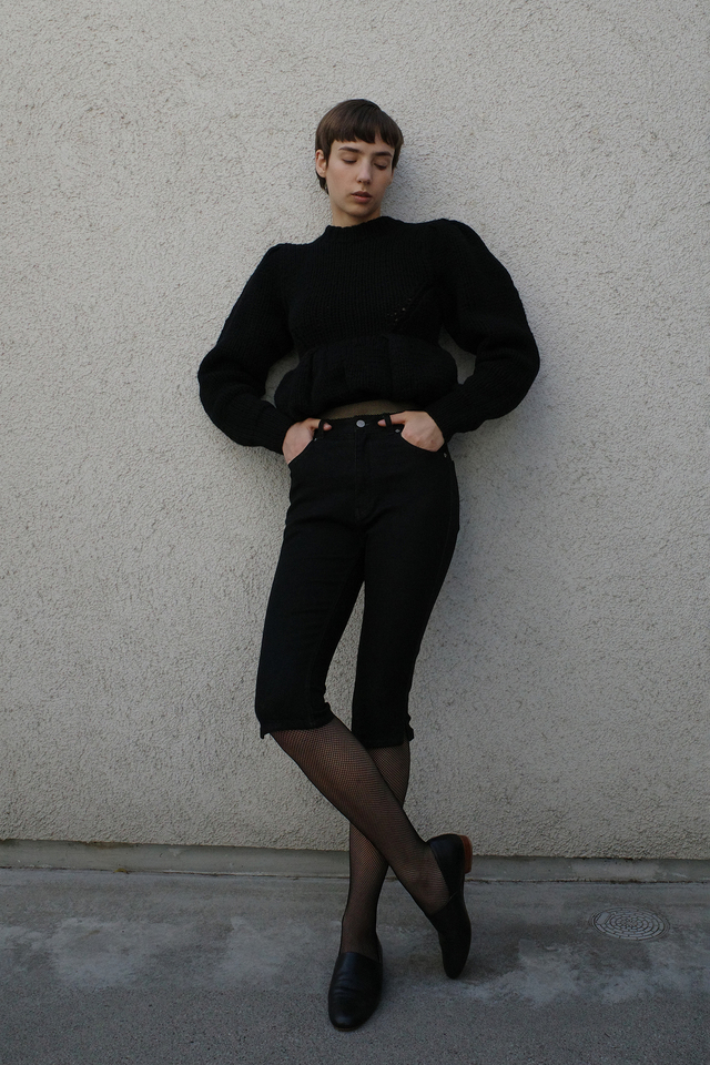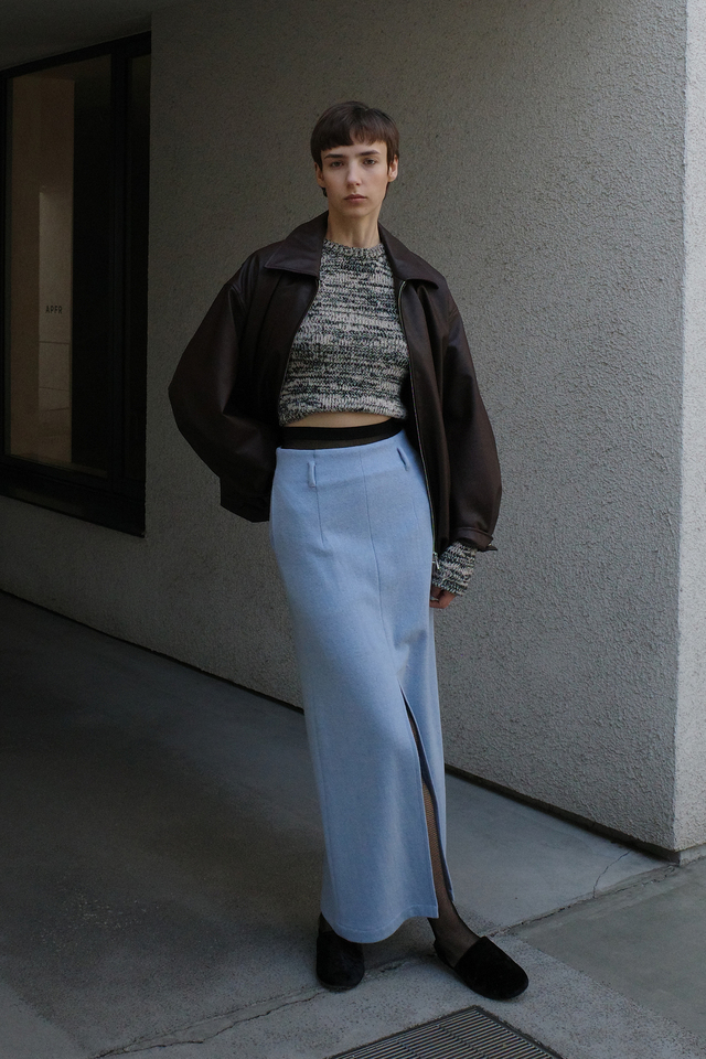 オーバーサイズのトップスやボリュームのあるブラウスを合わせて、バランスの良いモードなスタイリングを楽しむのもおすすめ。