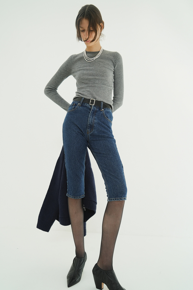 タイトなシルエットとトレンド感を兼ね備えた、ストレッチ入りデニム素材のカプリパンツ。