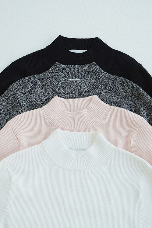 ベーシックなデザインながら、首元に程よい高さのハイネックを取り入れることで、秋冬らしい季節感を演出。