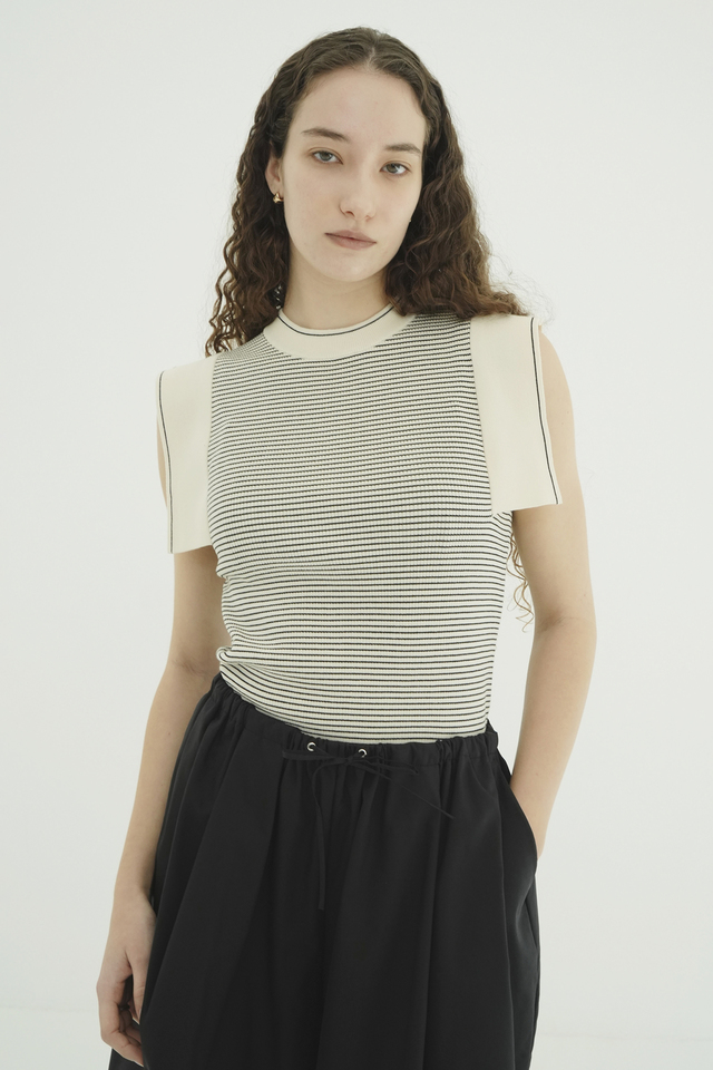 洗練されたデザインと快適な着心地を両立し、デイリーにも取り入れやすい一枚。パンツもスカートも選ばず着用可能で、サイドの肌見せが程よくヘルシーな印象を与えてくれます。