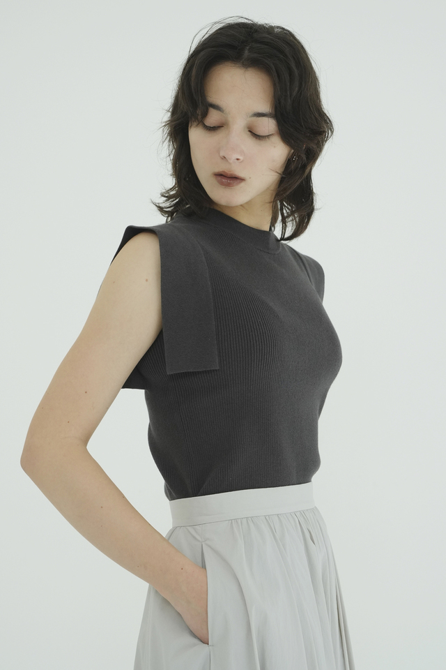 毎シーズンご好評を頂いているCLANE定番のスクエアスリーブニットトップス。程よいシャリ感のある糸を使用し、目を詰めて丁寧に編み立てたリブは、型崩れしにくく長く愛用いただけます。