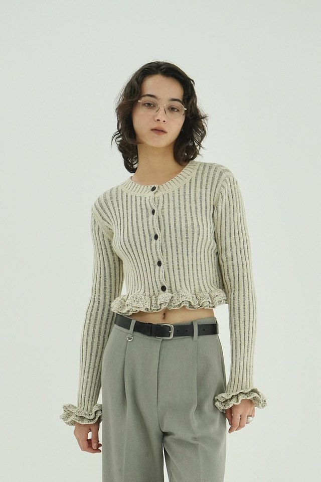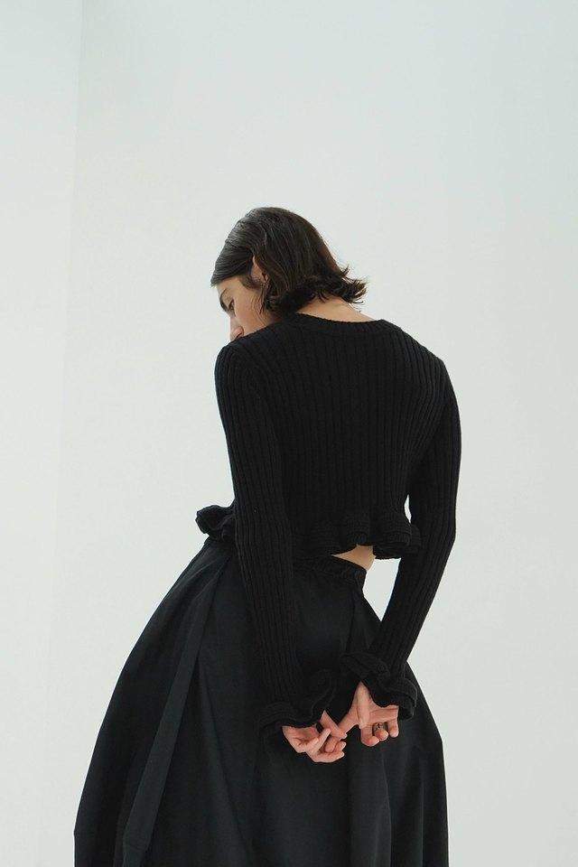 W FACE SHORT FRILLED KNIT TOPS