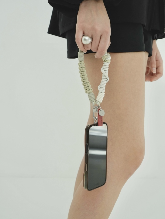 ベースとなる「Macrame Wrist Strap」のストラップの太さを3mmに変更し、女性の手元にも自然に馴染む繊細なバランスに仕上げました。留め具をあえて1つにすることで、よりミニマルで洗練された印象に仕上げています。