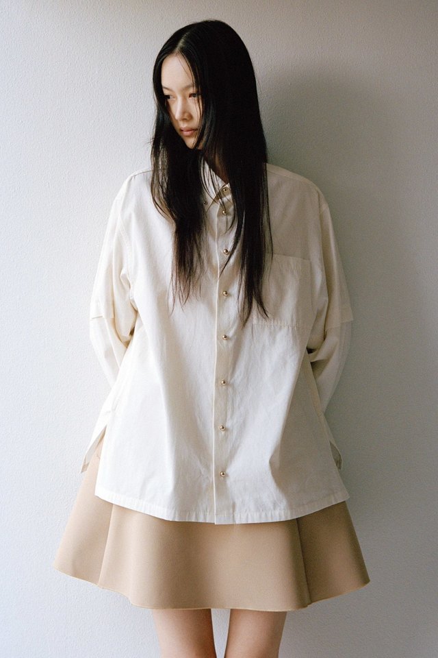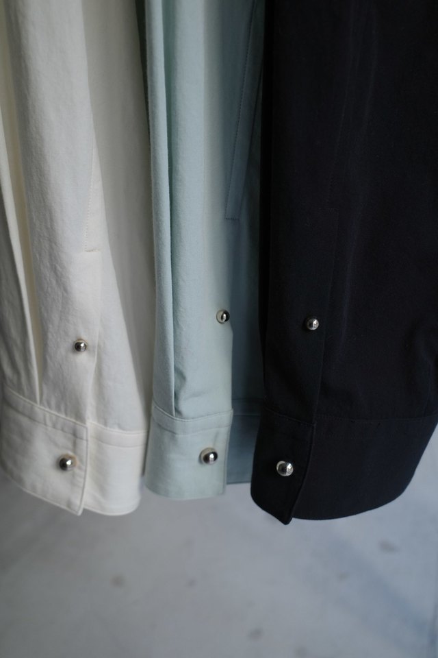 ひとつのパーツから始まり、素材、シルエット、縫製へと丁寧に積み重ねられたデザイン。JEWELRY OVER SHIRTSは、CLANEの“ものづくり”を象徴する一着です。