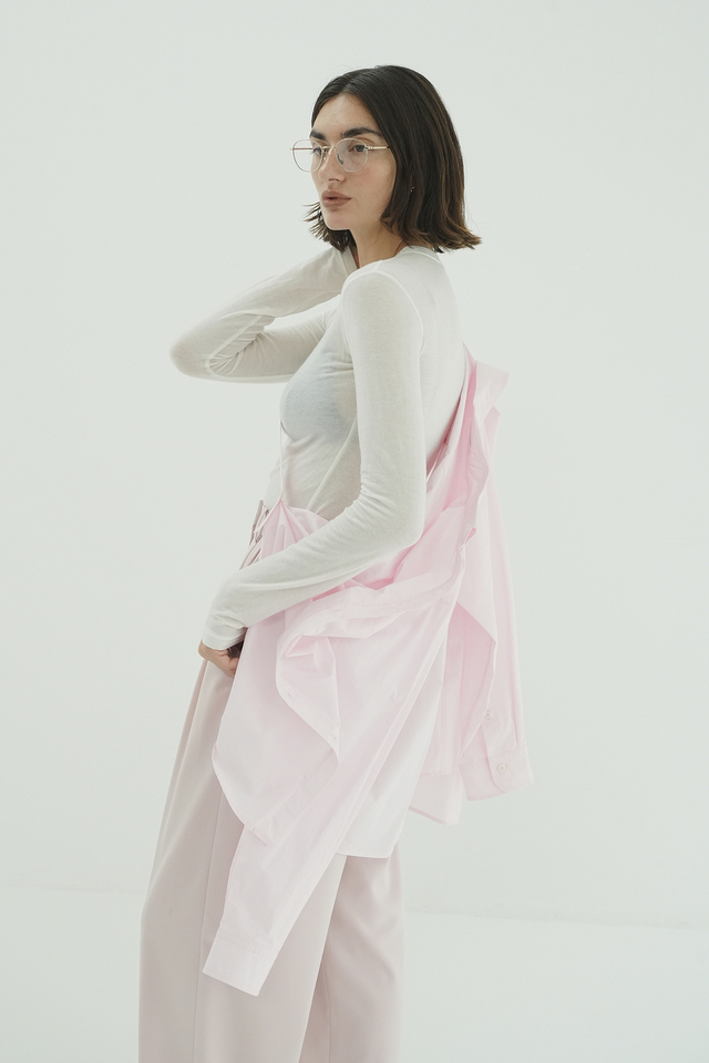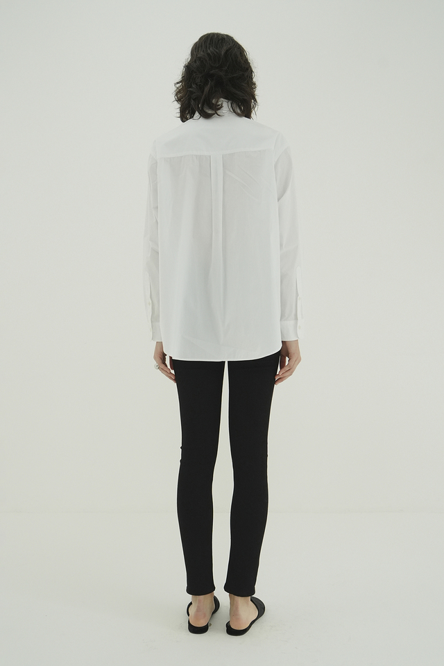 メンズシャツのディテールを取り入れ、少しオーバーなシルエットに仕上げました。