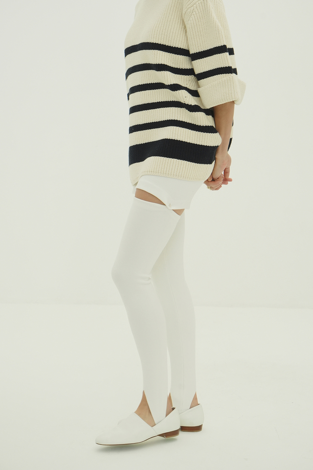 太もも部分のボタンを外すとショートパンツ・トレンカ単体でも着用できる2WAY仕様のニットトレンカ。
