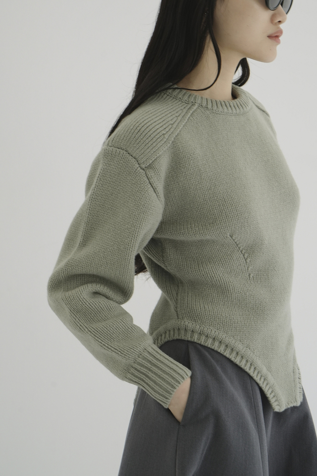 細い番手の糸を16ゲージで丁寧に編み立てた、繊細なシアーリブニット。