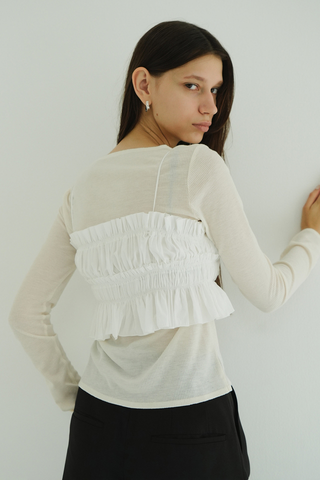 カットソーとキャミソールビスチェがセットになったトップス。