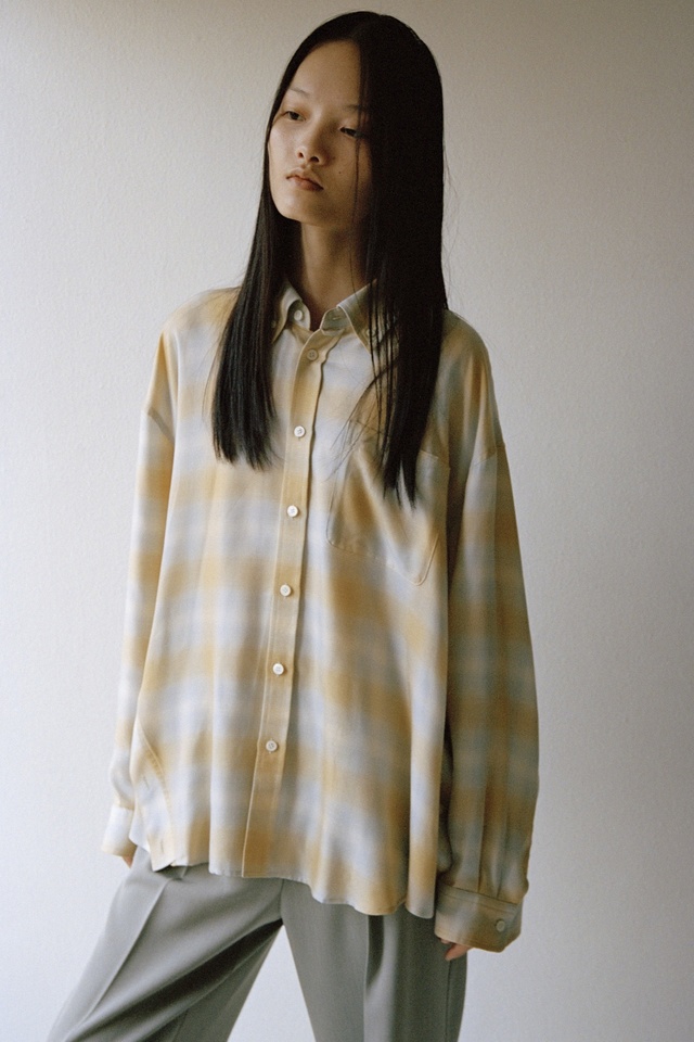 CLANEオリジナルのオンブレーチェックを使用した、2WAY仕様のチェックシャツ。レーヨンならではの落ち感と滑らかな風合いが魅力の、Made in Japan素材で仕立てました。