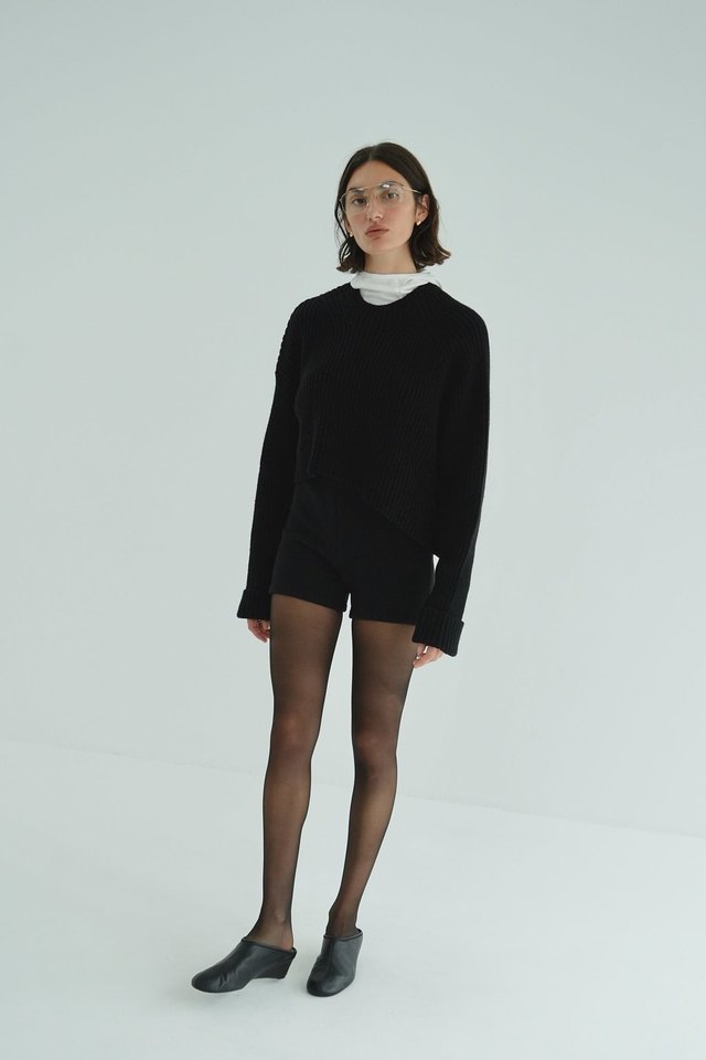 程よい透け感で肌の露出を抑えつつ、スタイリングに奥行きをプラスしてくれる一足です。ミニ丈ボトムやスウェット素材と合わせることで、重くなりがちな冬のスタイリングを軽やかに見せ、季節の変わり目にも活躍。甘さのあるレース素材も、CLANEらしいモードなアイテムと合わせることで抜け感を出してくれます。
