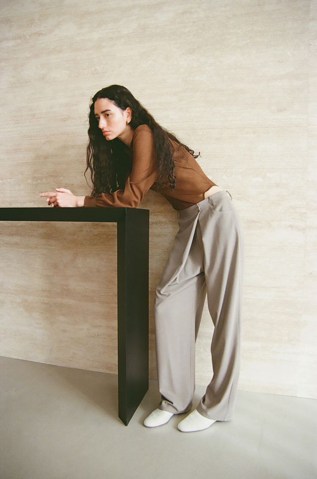 ジャストウエストの程よくルーズなシルエットで、脚が美しく見えるラインにこだわりました。