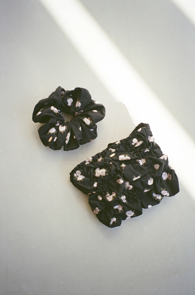 先行予約限定でノベルティの花柄シュシュとポーチセットをプレゼント