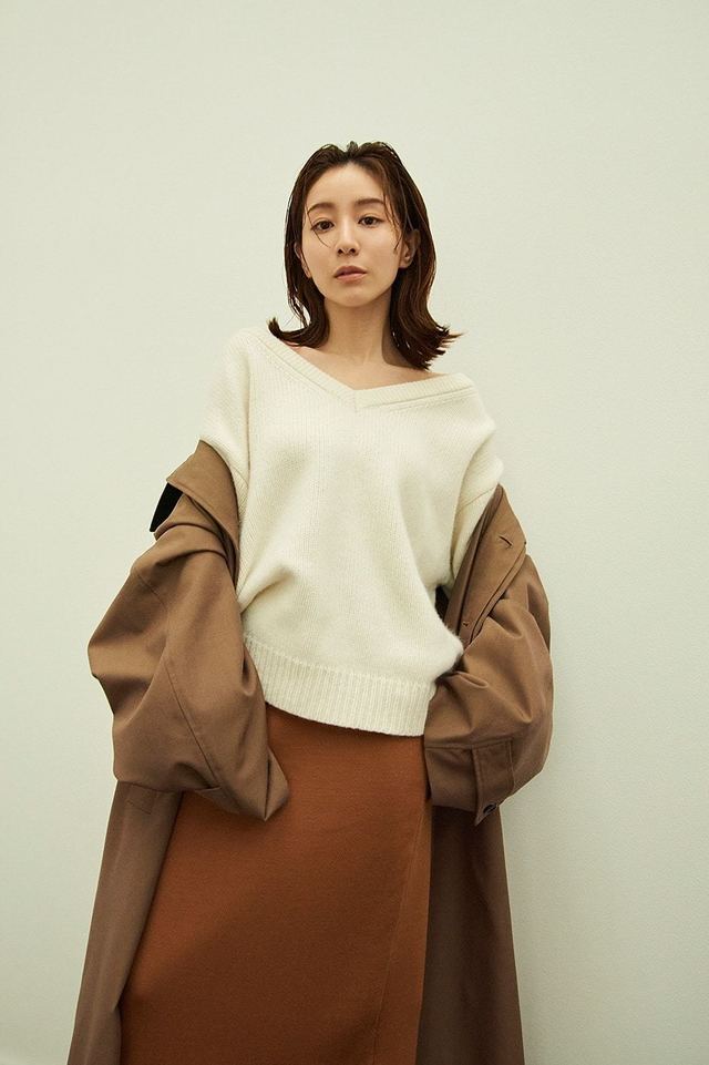 みな実さんの「デコルテが綺麗に見えるVネックニットをCLANEでつくりたい」という思いから完成しました。