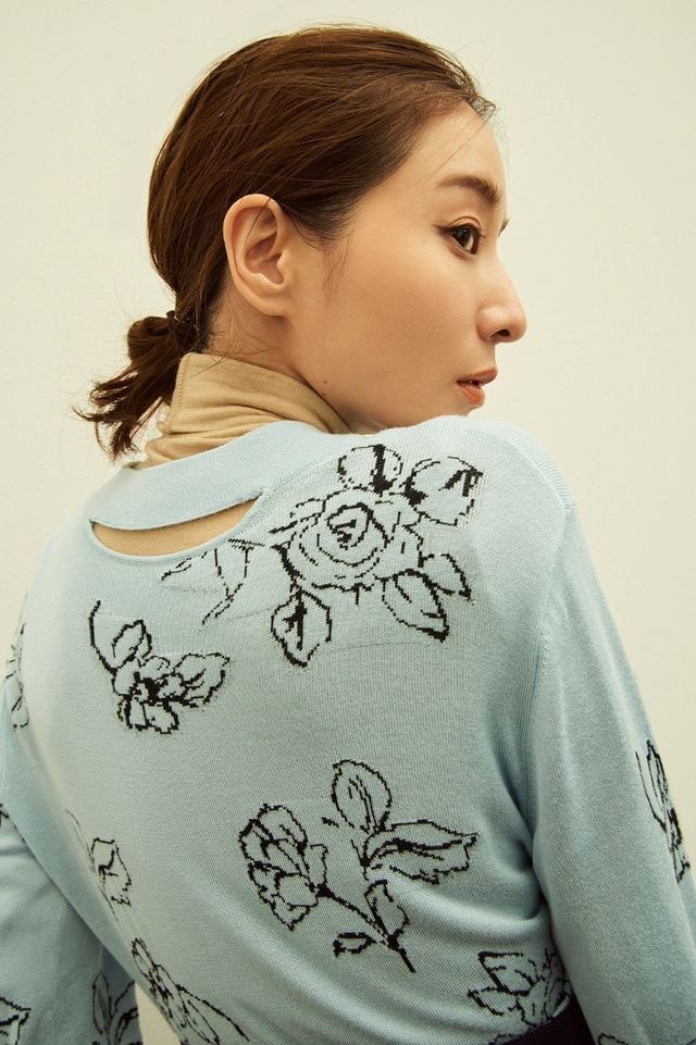 甘すぎない手書き風の花々がデザインされた、Wフェイスニットカーディガン。
