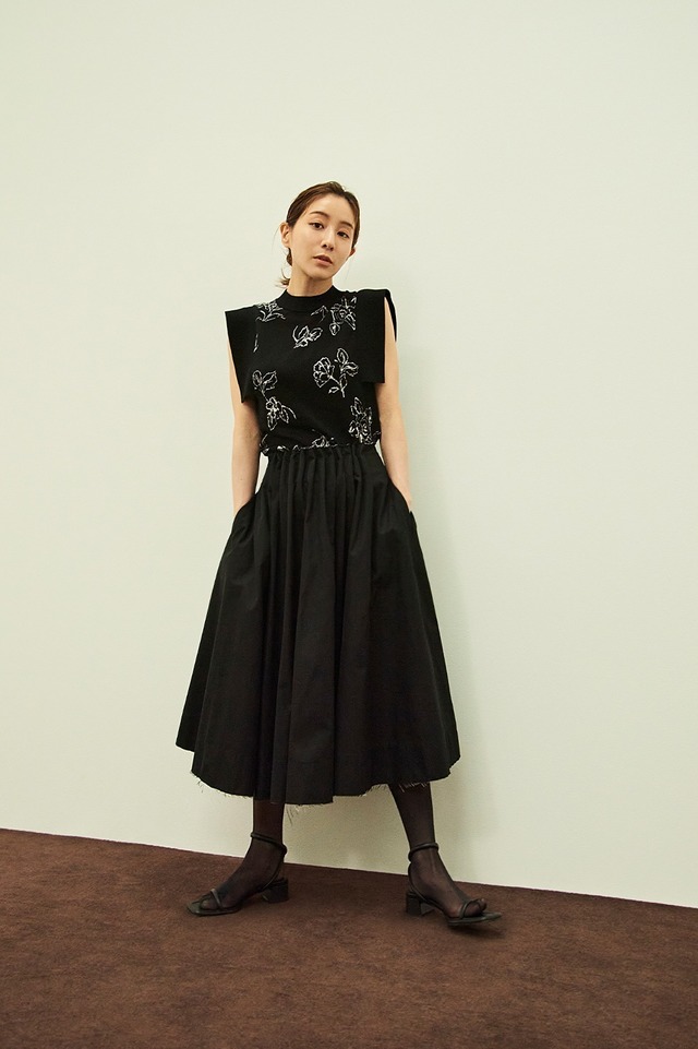 同じシリーズのMINAMI TANAKA×CLANE THIN FLOWER SQUARE SLEEVE KNIT TOPSとセットで着るスタイルもおすすめです。
