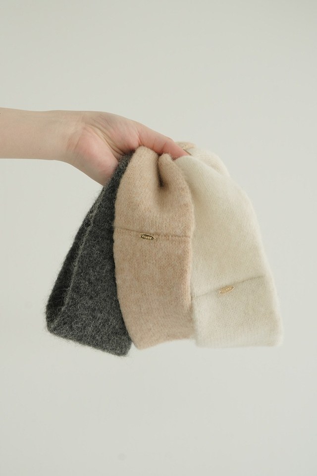 程よくホールド感がありながら、肌触りが良く敏感肌の方でもストレスなく着用いただけます。切り替え付近にはCLANEロゴプレートをあしらい、冬のへアアクセとして活躍するアイテムです。