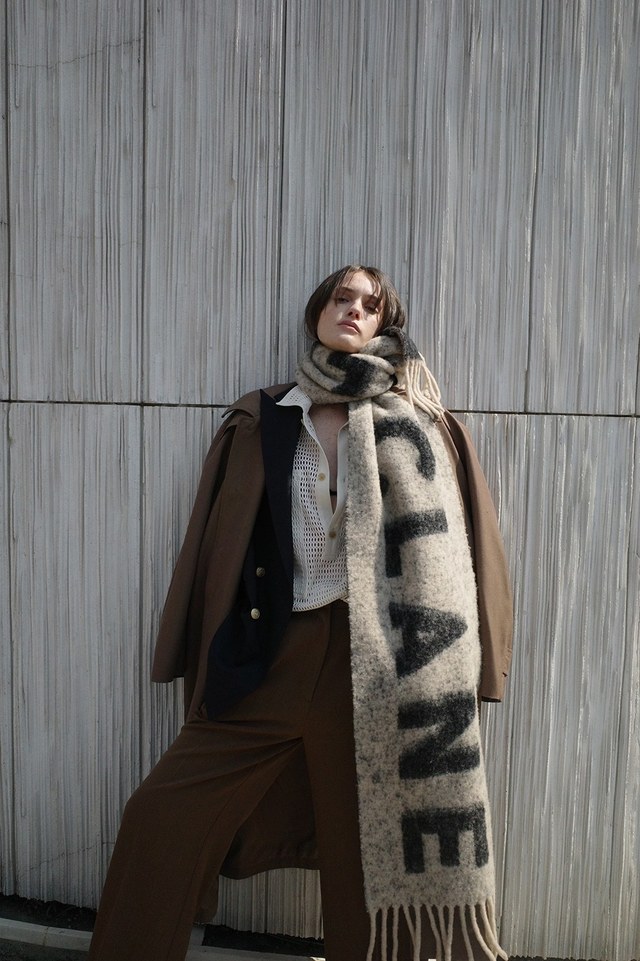 ギフトの"定番"といえば、マフラー。CLANEのロゴを大きくあしらった、存在感のあるマフラーです。
