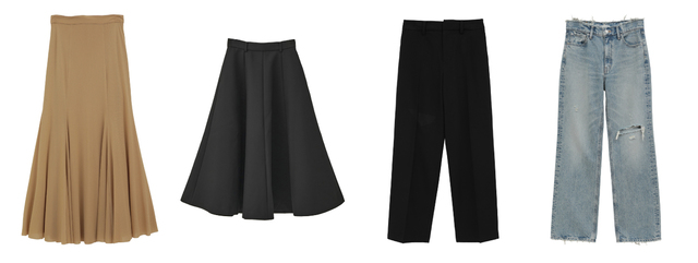 無駄のないすっきりとしたデザインで、様々なスタイリングに合わせやすい一本です。ウエスト位置を高く設定することで、スタイルアップ効果があります。