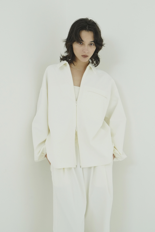 フロントはダブルジップ仕様で、すっきりとしたミニマルなデザインに仕上げ、スタイリングのバランスが取りやすいのも魅力。一枚で着映えする、機能性とデザイン性を両立したアイテムです。