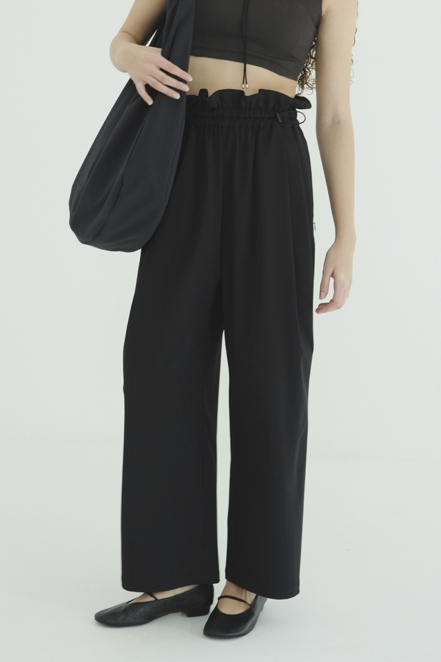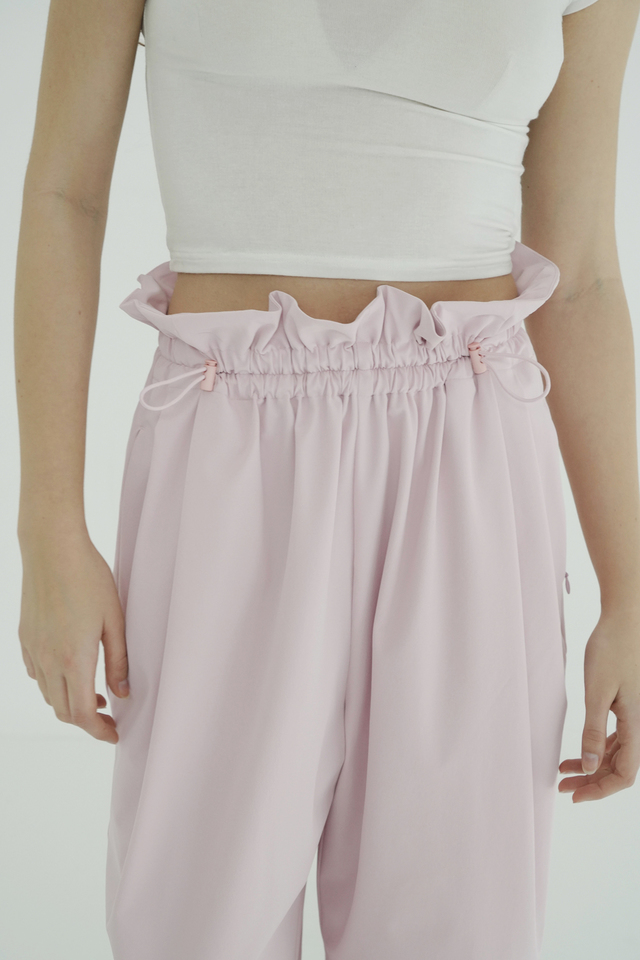 ウエストは総ゴム仕様でストレスフリーな穿き心地。さらにフロントのドローストリングでフィット感の調整が可能です。コンシールファスナー付きポケットなど、機能性にも配慮しました。