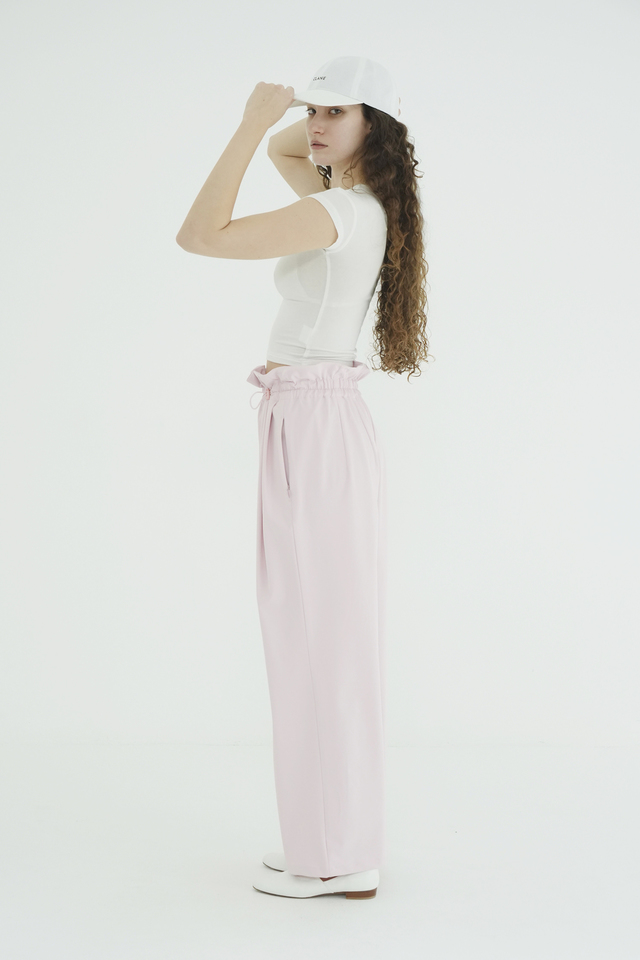 リラックス感のあるゆったりとしたシルエットながら、ウエストデザインと縦に落ちるタックがスタイルアップを叶え、すっきりとした印象に導きます。