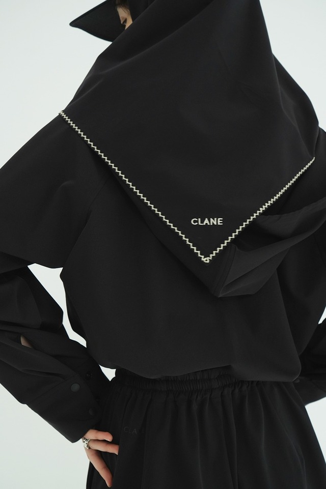 留め具部分にはさりげなくCLANEのチャームをあしらい、スタイリングに溶け込みながらもアクセントとなるデザインです。