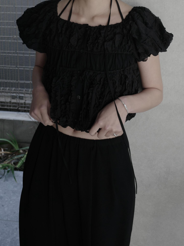 TOPS:W FACE TOPSTITCHED FRILL TOPS ¥22,000+tax /BLACK/サイズ①