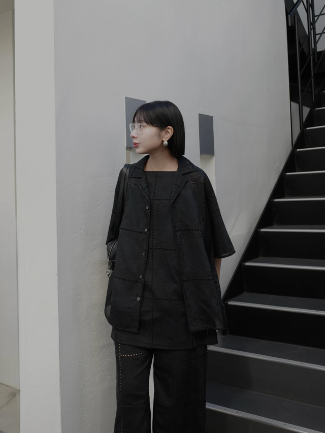 TOPS:EMBROIDERY LACE BOX SHIRTS ¥26,000+tax /BLACK/サイズ①